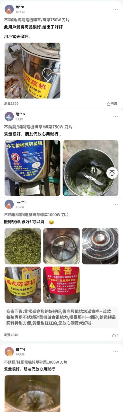 12分鐘前【養殖好幫手】多功能碎菜機,碎菜只需1秒,廠家直銷,貨到付款 量大優惠! - 800W不鏽鋼台式碎菜機--NT$3590